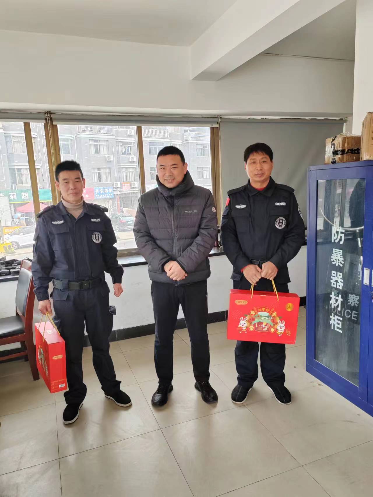 学院领导一行到值班室、综合楼、学生宿舍、门卫室等,每到一处,都与在岗职工亲切交流,认真查看、详细了解各岗位工作运行情况,并代表学院向值班人员送上新年祝福和慰问品,感谢他们为平安校园建设做出的重要贡献。