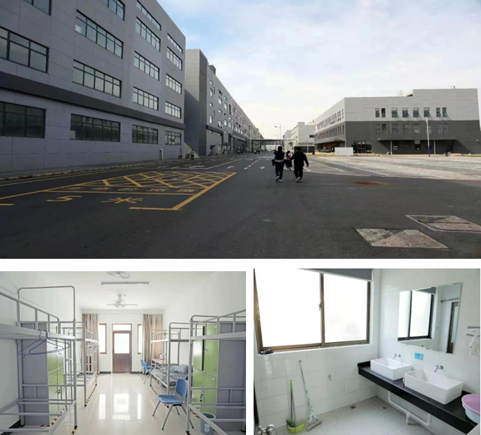 公司提供免费的集体宿舍,水电费按实际分摊,宿舍八人间,宿舍有独立的卫生间洗漱间,空调,风扇,配置公共洗衣机、饮水机